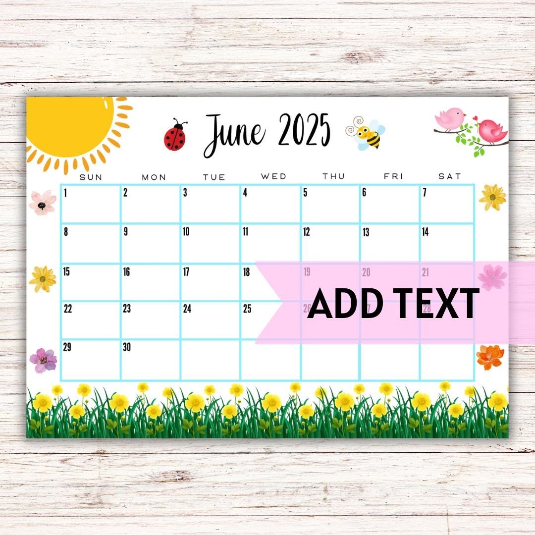 EDITABLE June Calendar 2025 Cute June 2025 Calendar W Flowers