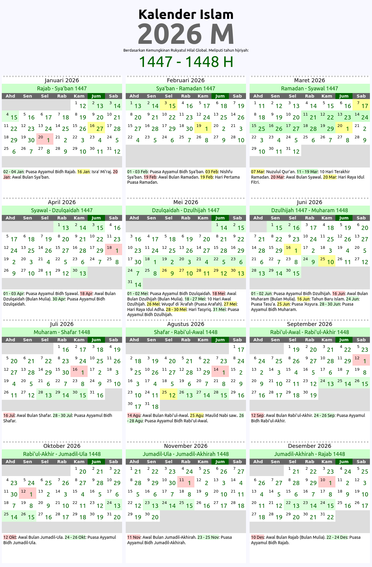 Kalender Islam Tahun 2026 M Penanggalan Hijriyah Global