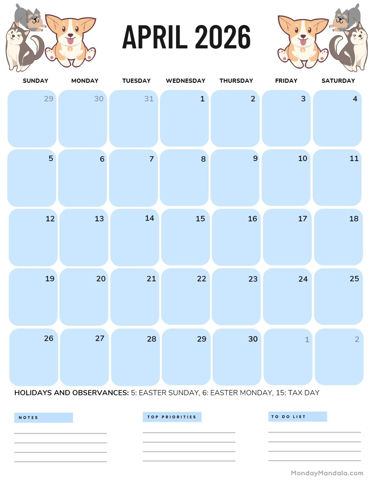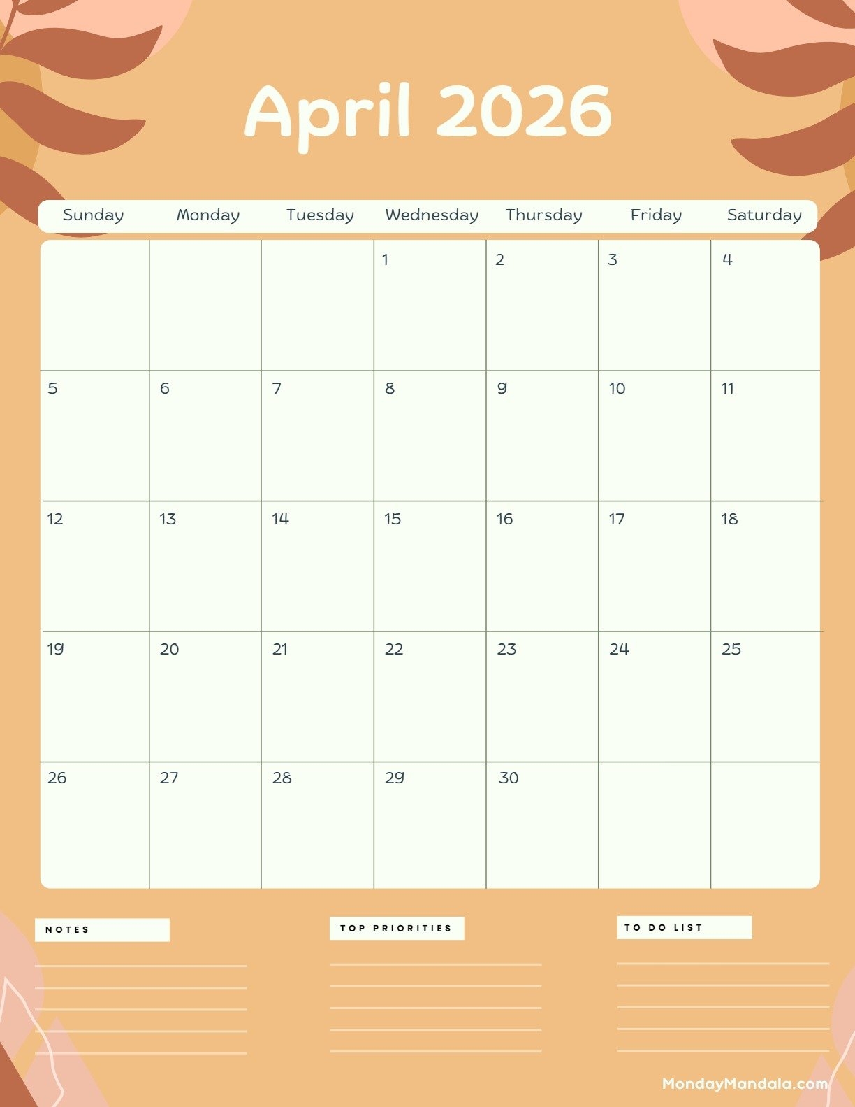 With our April 2026 calendar printable vertical option, you can easily plan your month ahead of time. This calendar includes all the major holidays and observances, so you never miss an important date. Plus, there’s plenty of space for you to jot down notes and reminders.