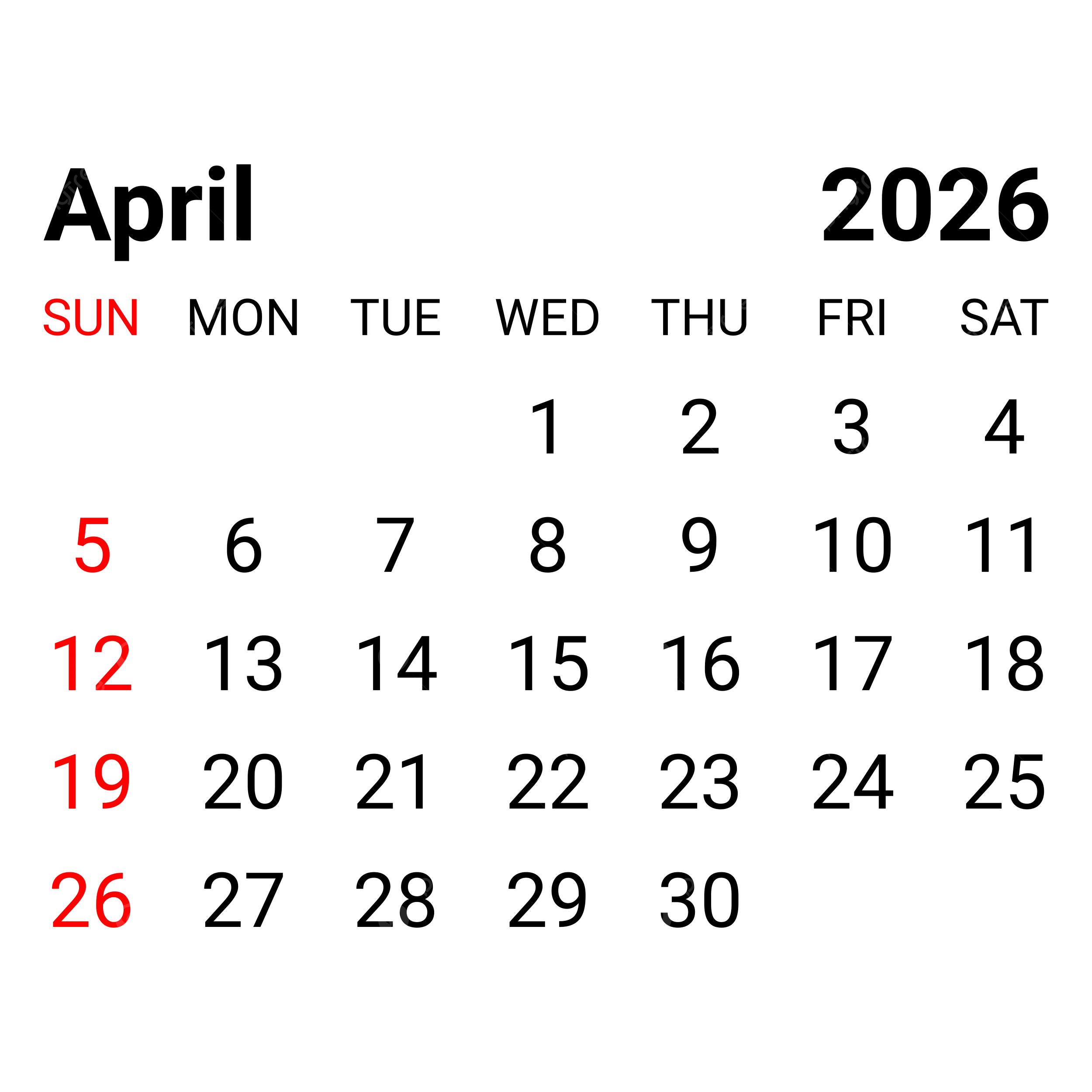 2026 April Monthly Calendar PNG Transparent Images Free Download Vector Files Pngtree