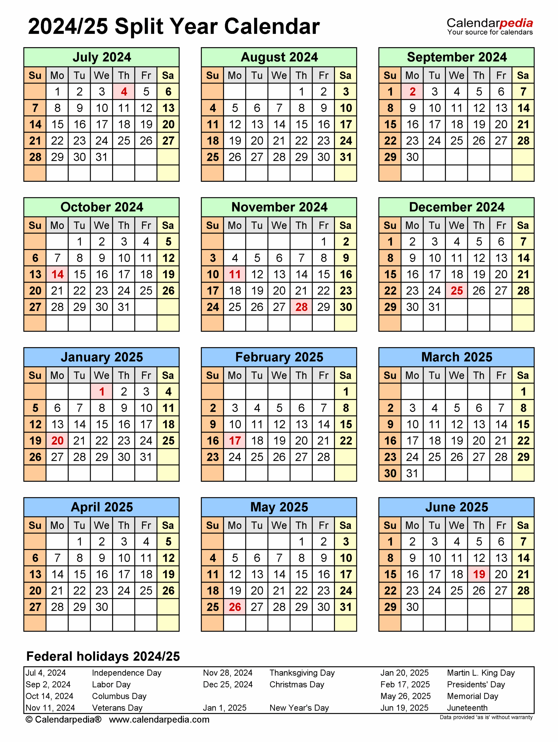 August 2023 – June 2025 Calendar