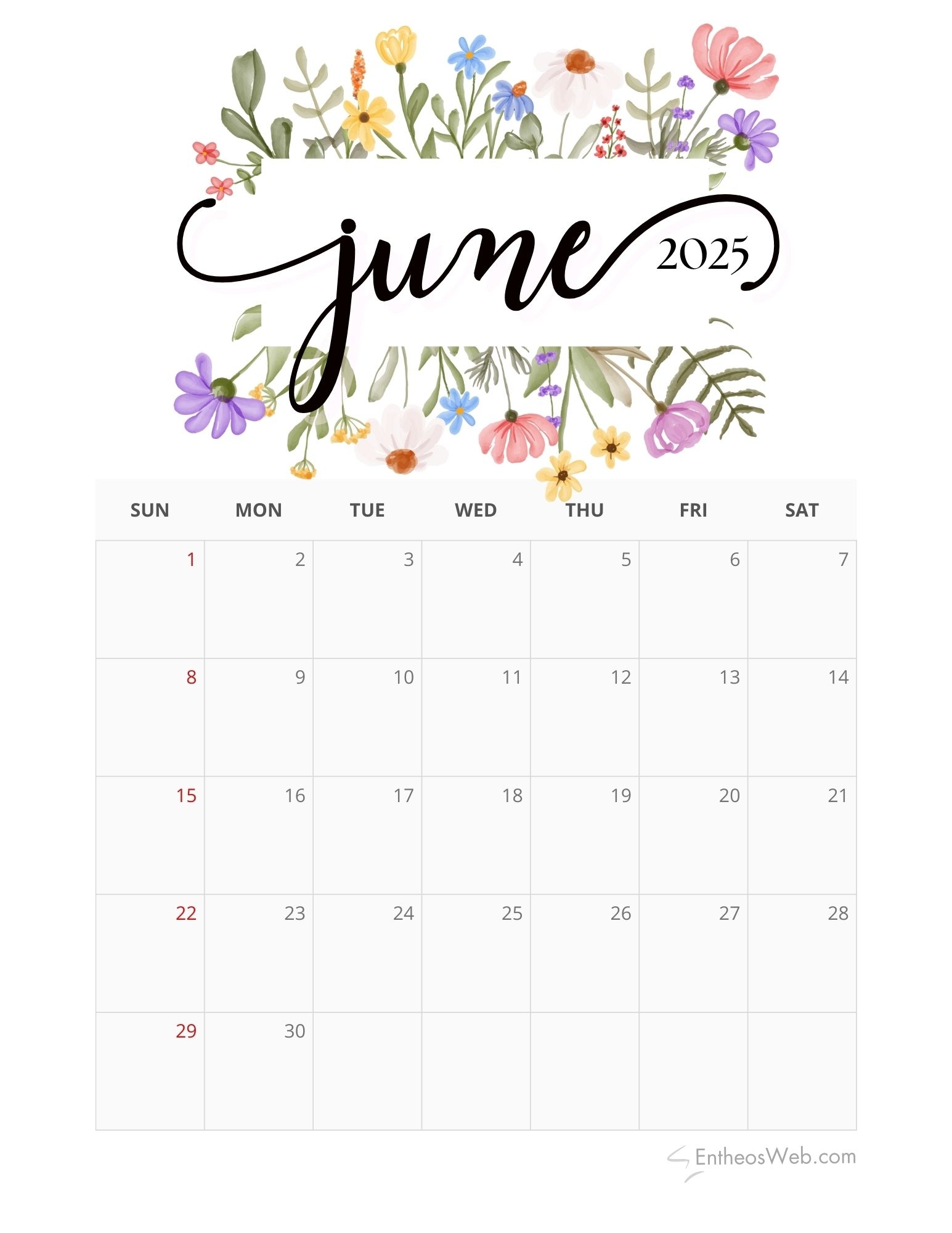 Free June 2025 Calendar Printable PDF Template With Holidays