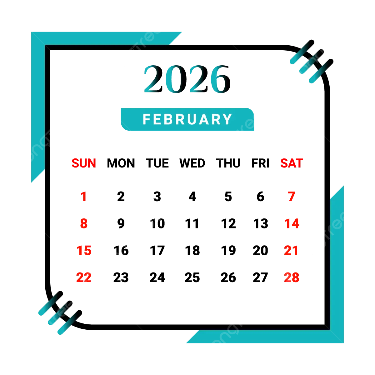 2026 February Month Calendar With Red And Black Unique Style Vector Monthly Calendar Calendar February 2026 PNG And Vector With Transparent Background For Free Download