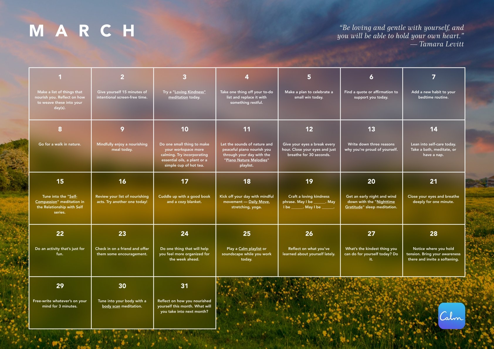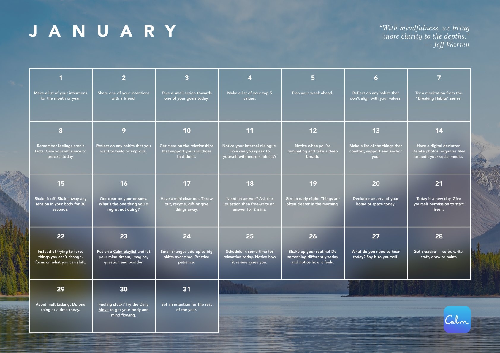 The Calm Calendar Daily Mindfulness Prompts To Support Your Wellbeing Calm Blog