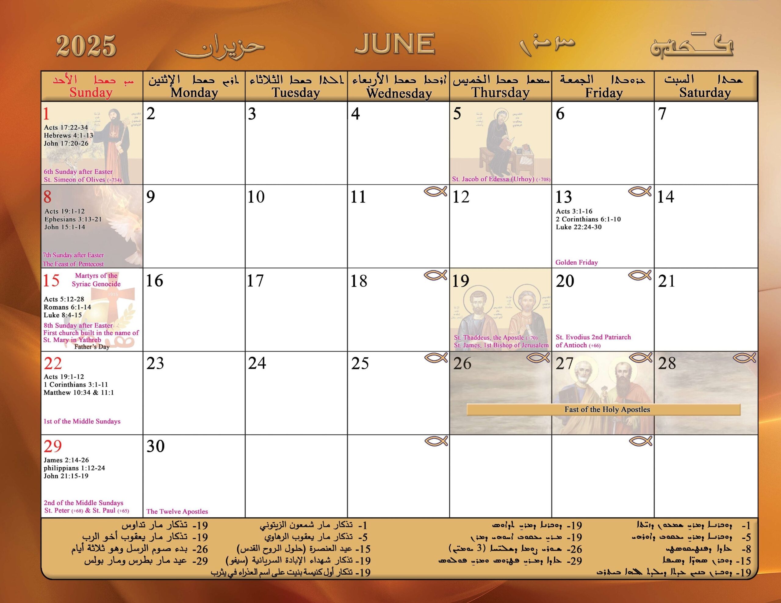 Liturgical Calendar Chaldean Diocese Of St Thomas The Apostle U S A