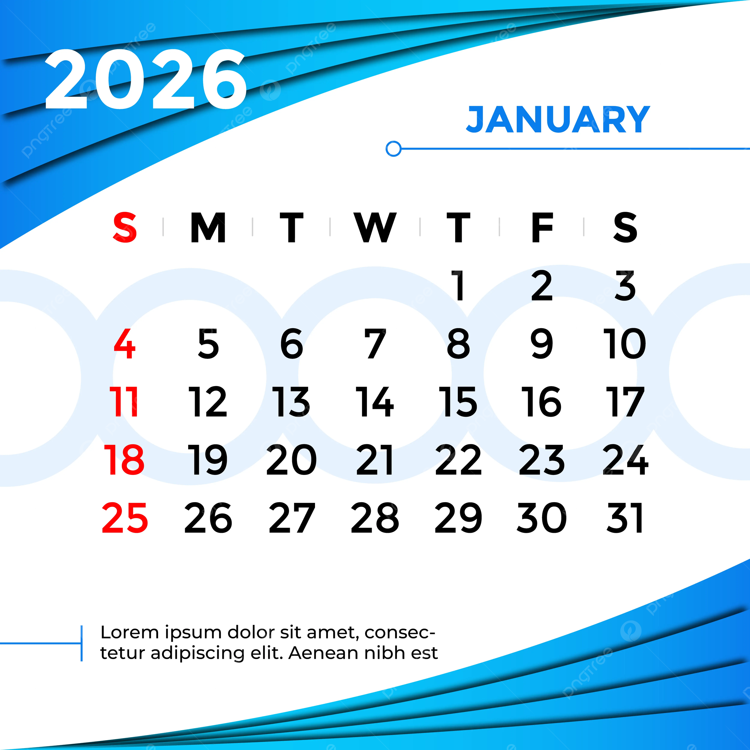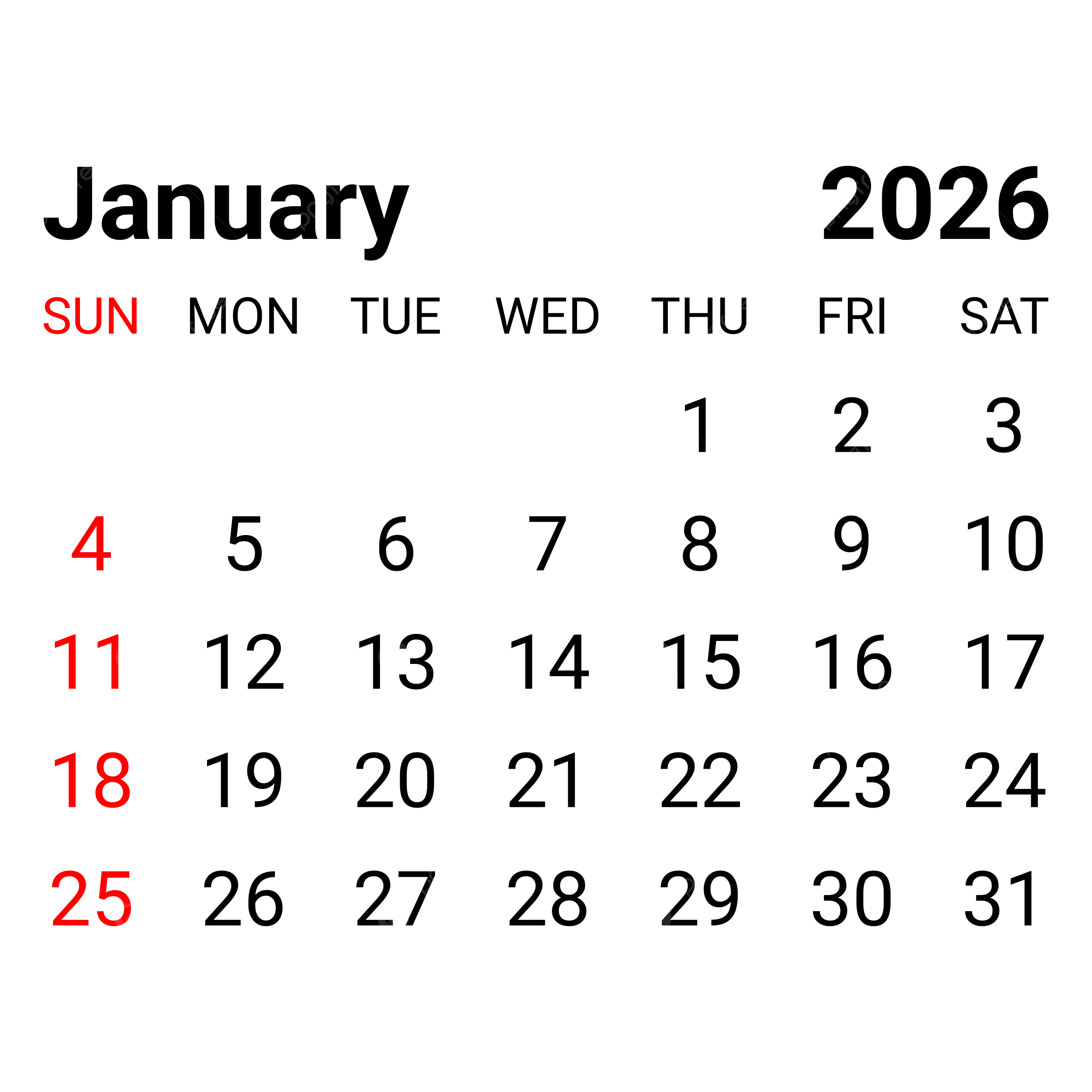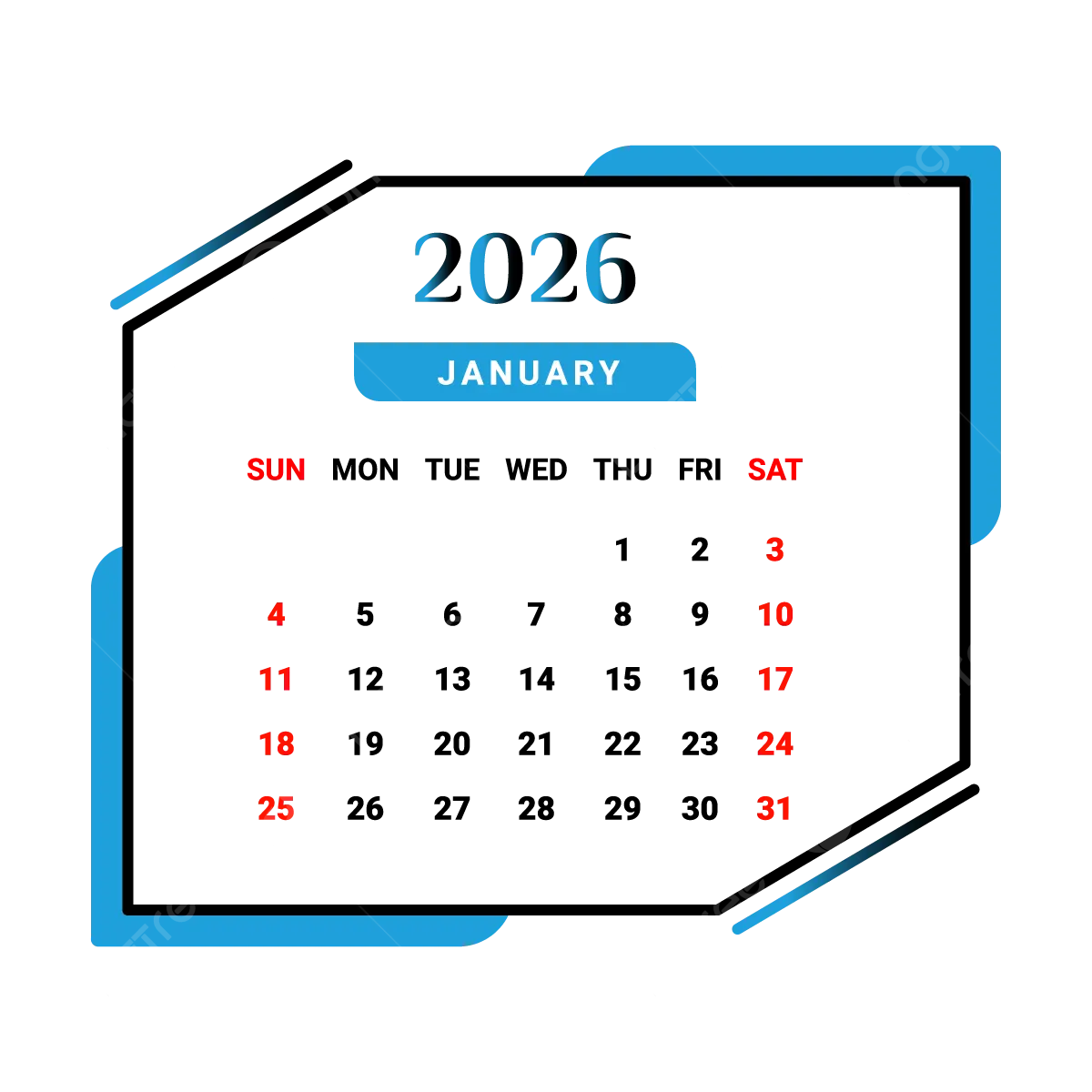 2026 January Monthly Calendar Vector 2026 January Monthly Calendar 2026 January Calendar PNG And Vector With Transparent Background For Free Download