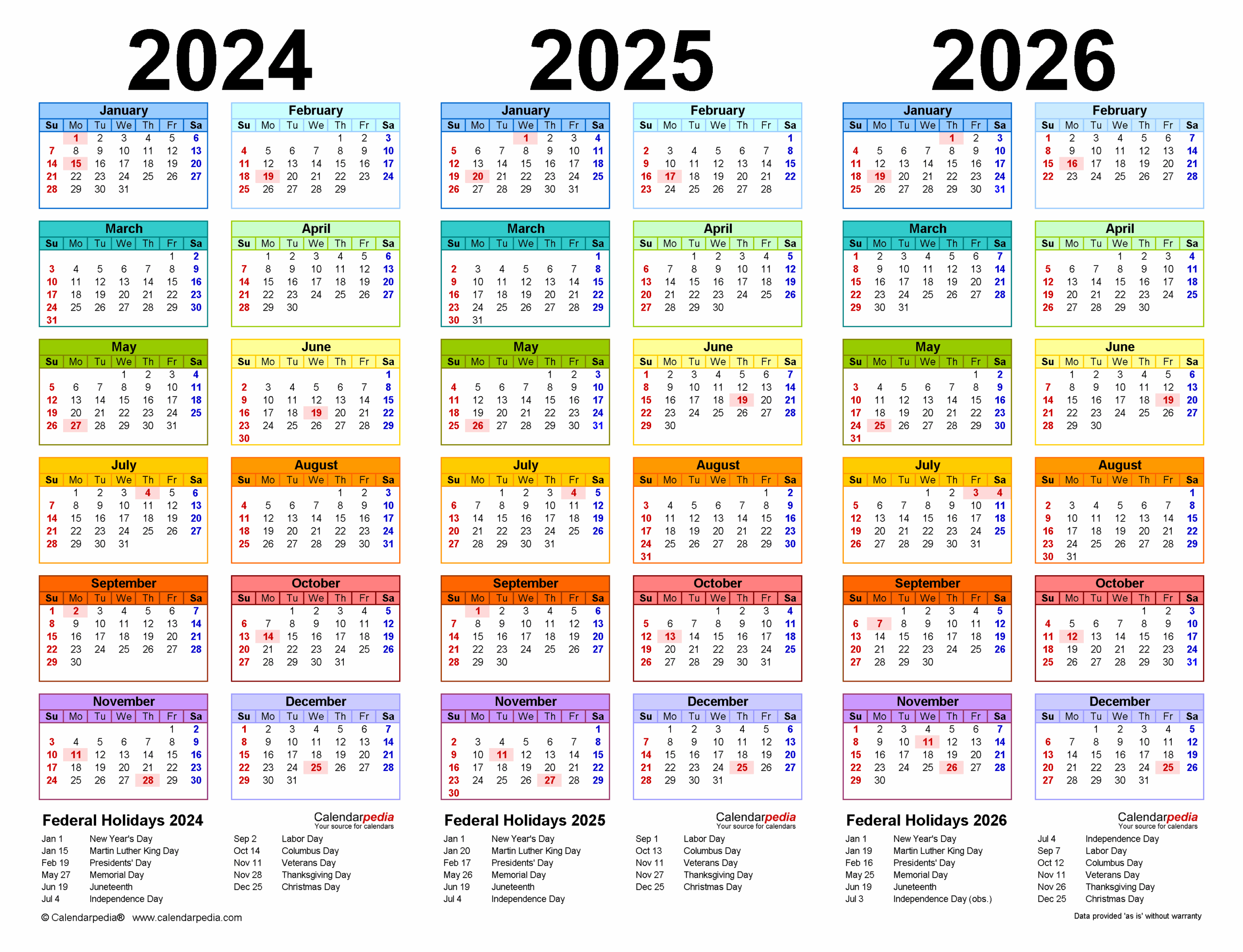 2024 2026 Three Year Calendar Free Printable Excel Templates