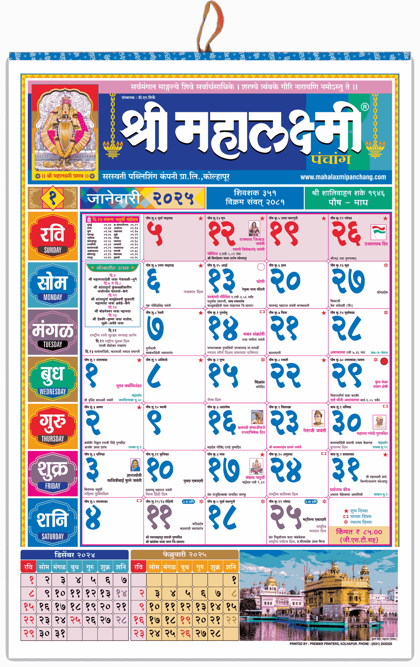 Marathi Big Calendar 2025 Shri Mahalaxmi Varshik Panchang Super Edition