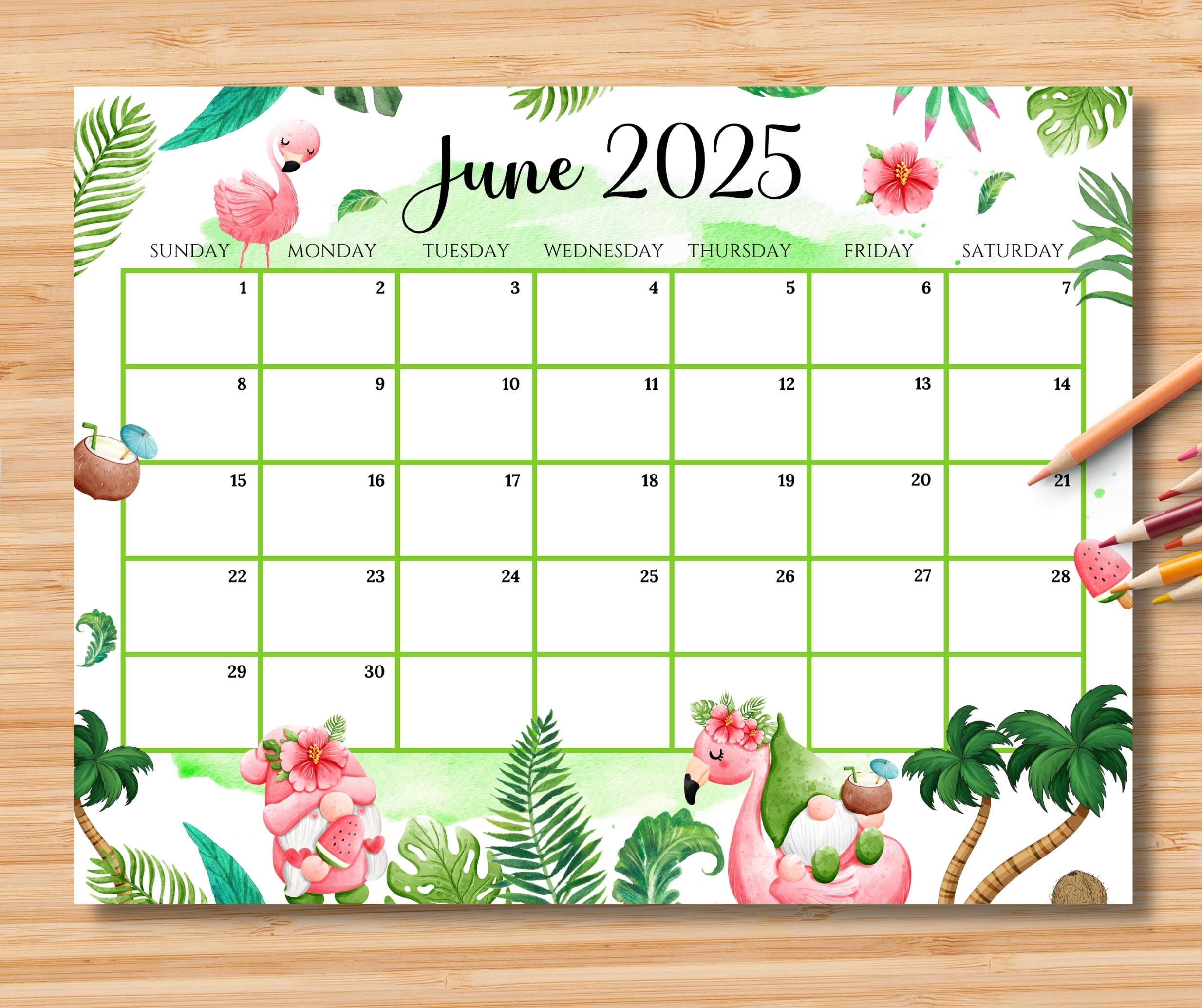 EDITABLE June 2025 Calendar Joyful Summer With Cute Gnomes