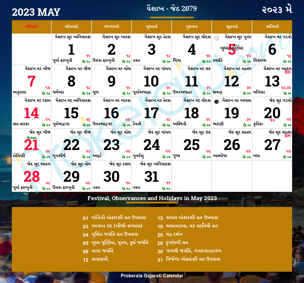 Gujarati Calendar May 2023 Vikram Samvat 2079 Vaishakha Jetha