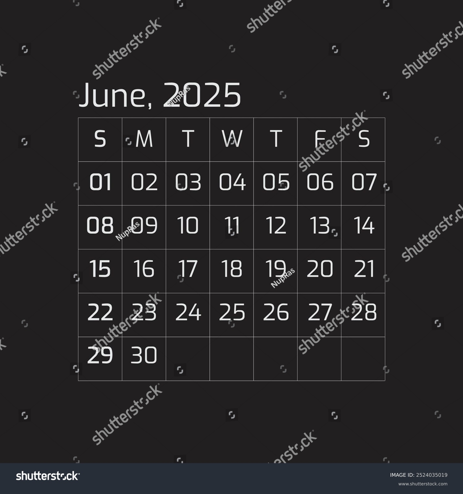 2025 June Year Dark Calendar Single Stock Vector Royalty Free 2524035019 Shutterstock
