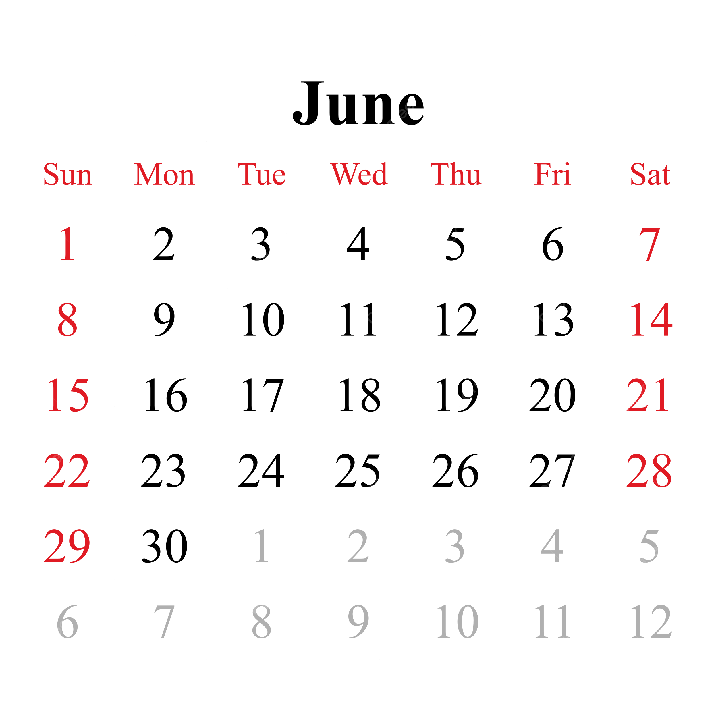 June 2025 Calendar Free Printable PDF XLS And PNG