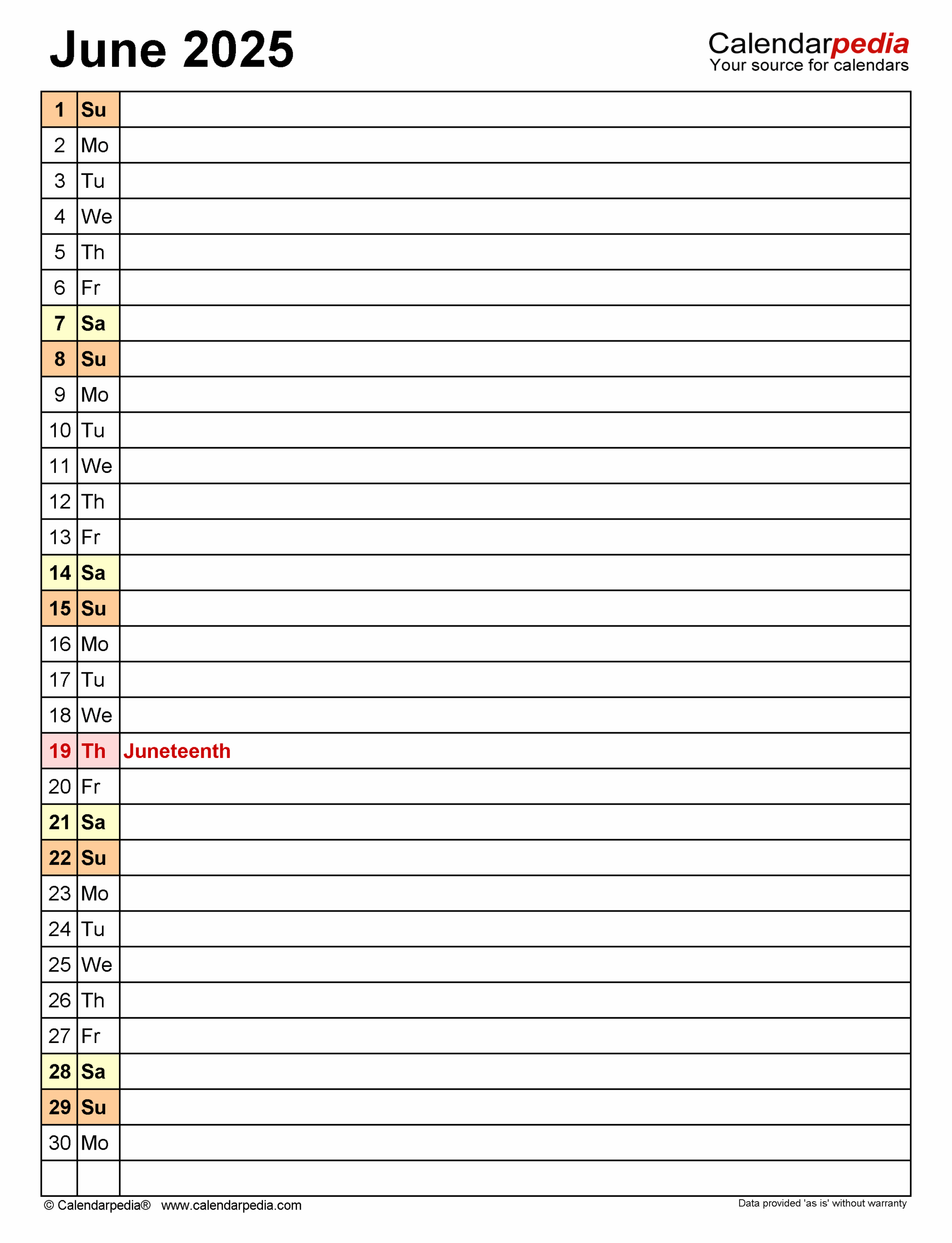 June 2025 Calendar List