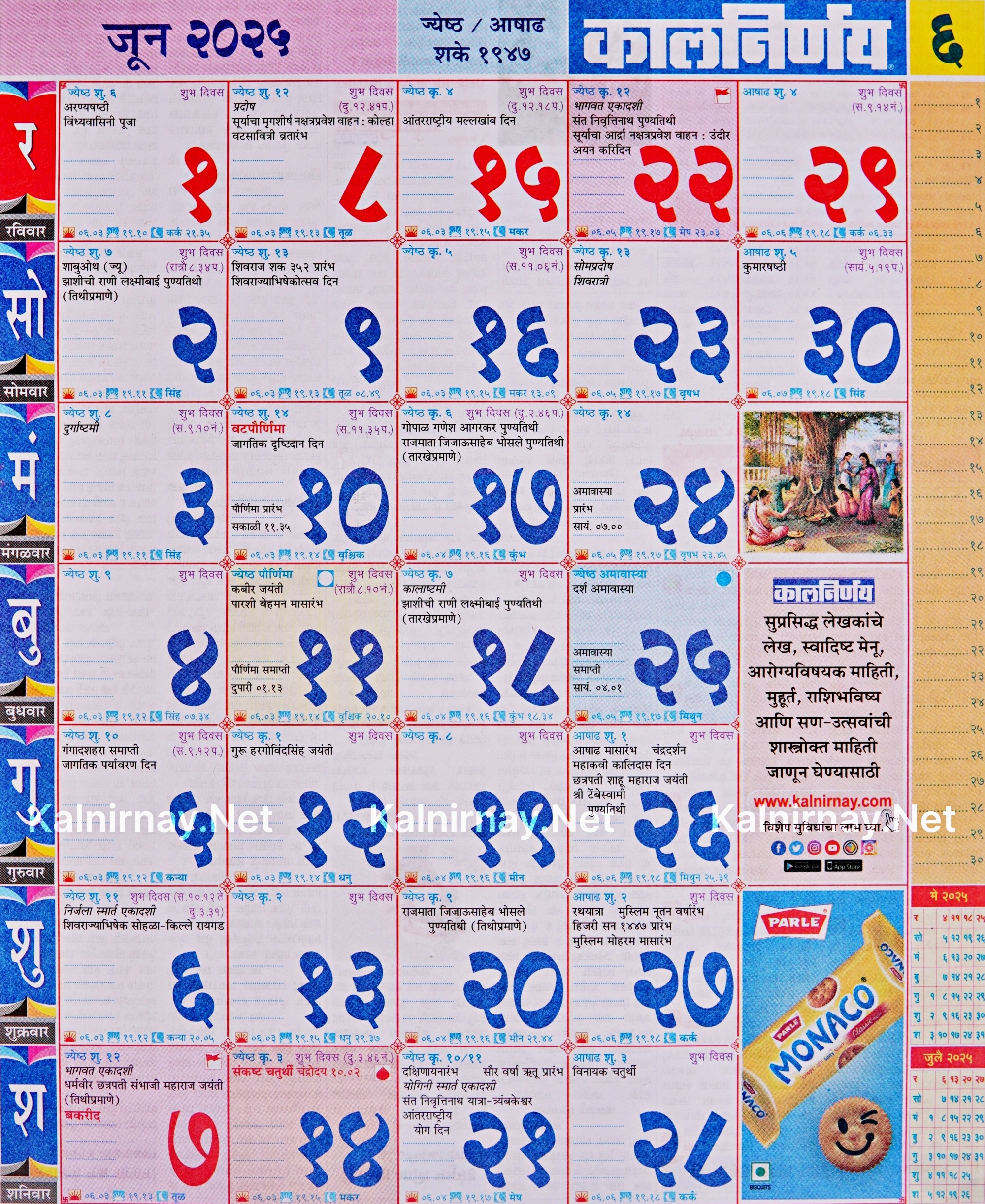 Gujarati Calendar June 2025 Vikram Samvat 2081 Jetha Ashadha
