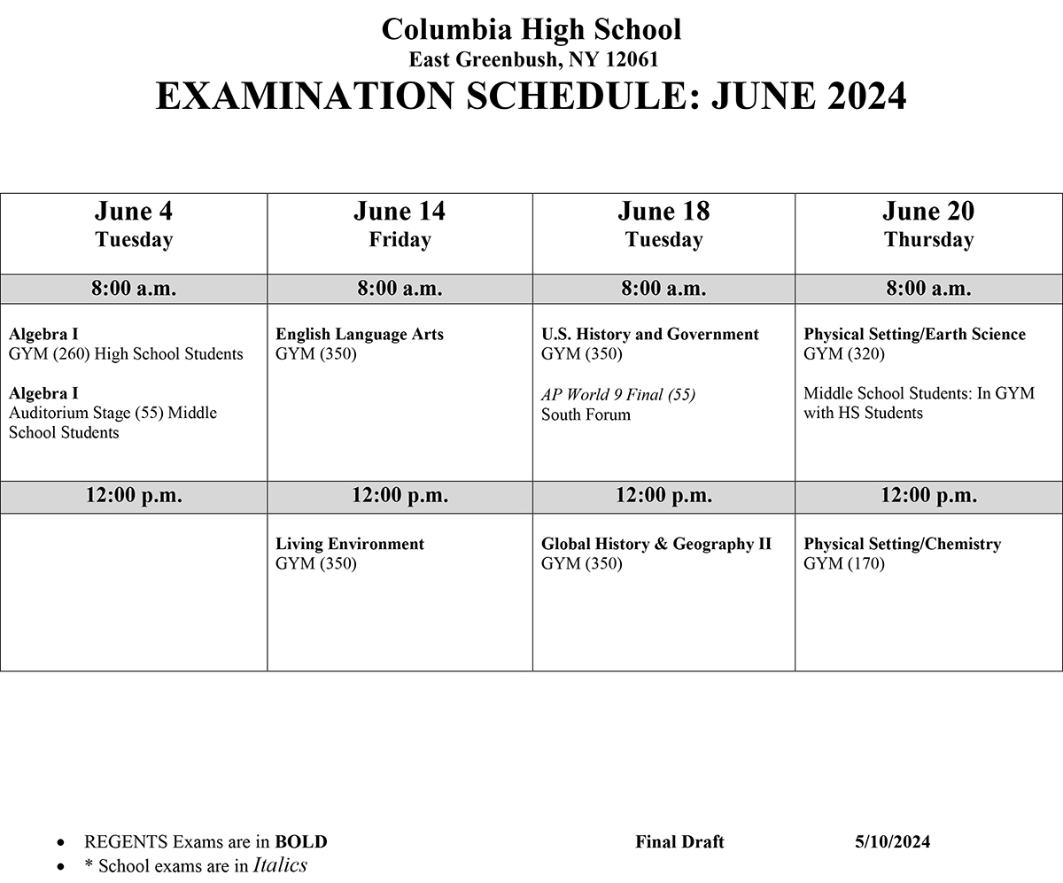Columbia Regents Exam Schedule June 2024 East Greenbush CSD