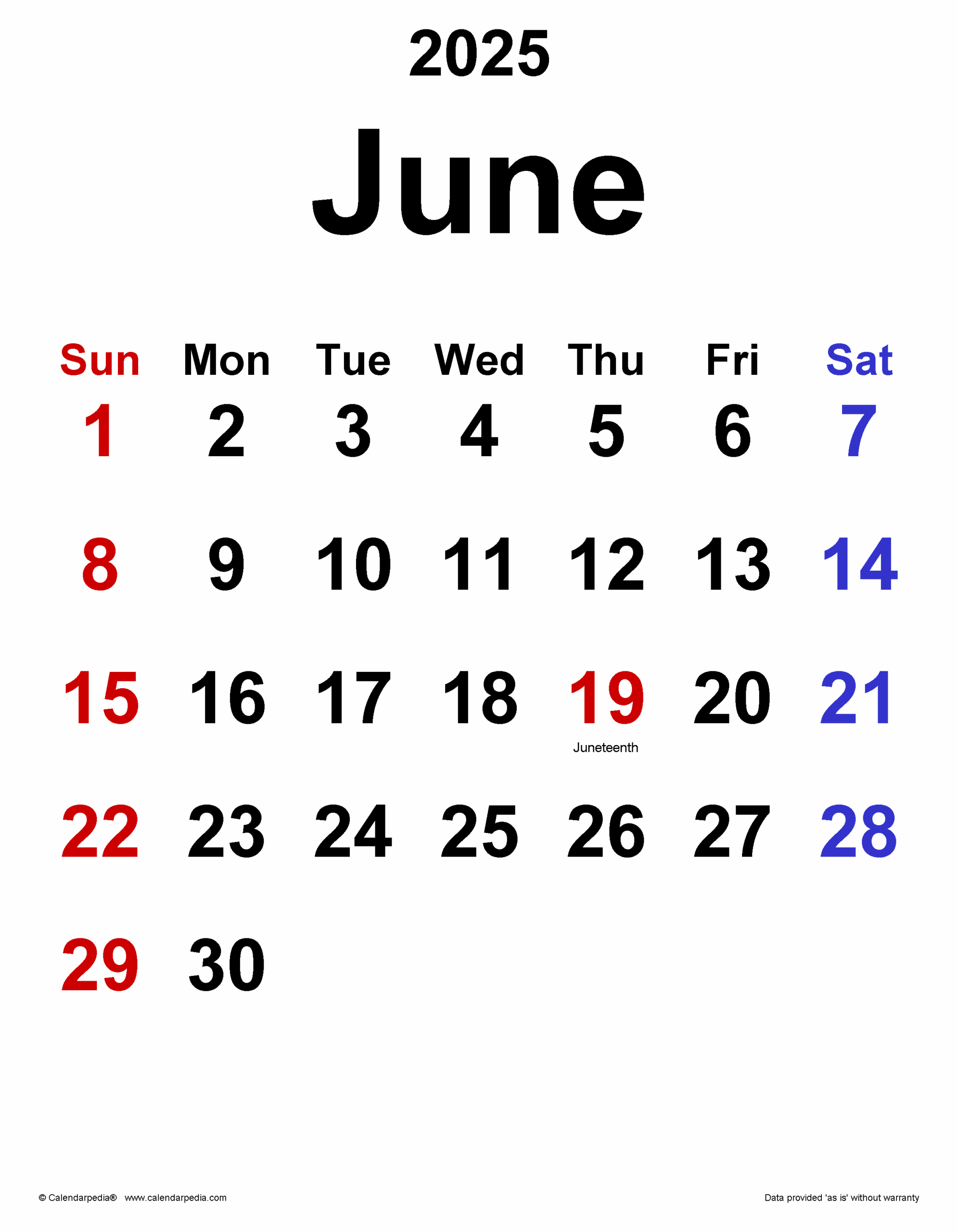 June Calendar 2025 Calendarpedia