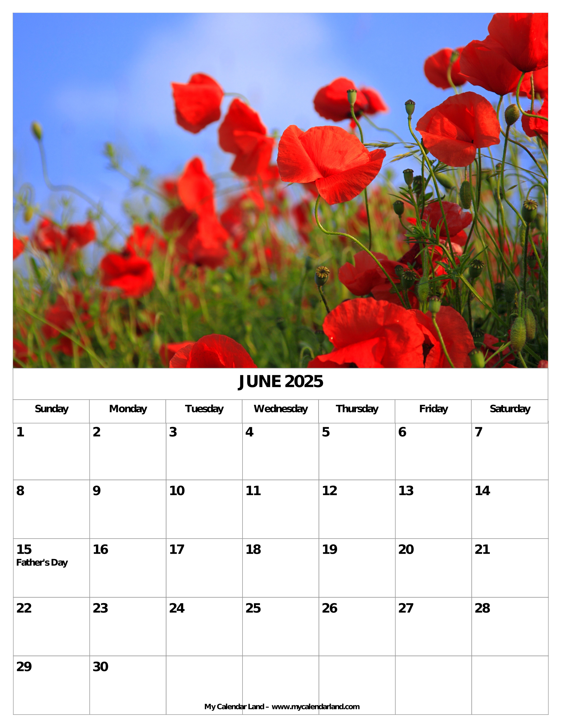 June 2025 Calendar My Calendar Land