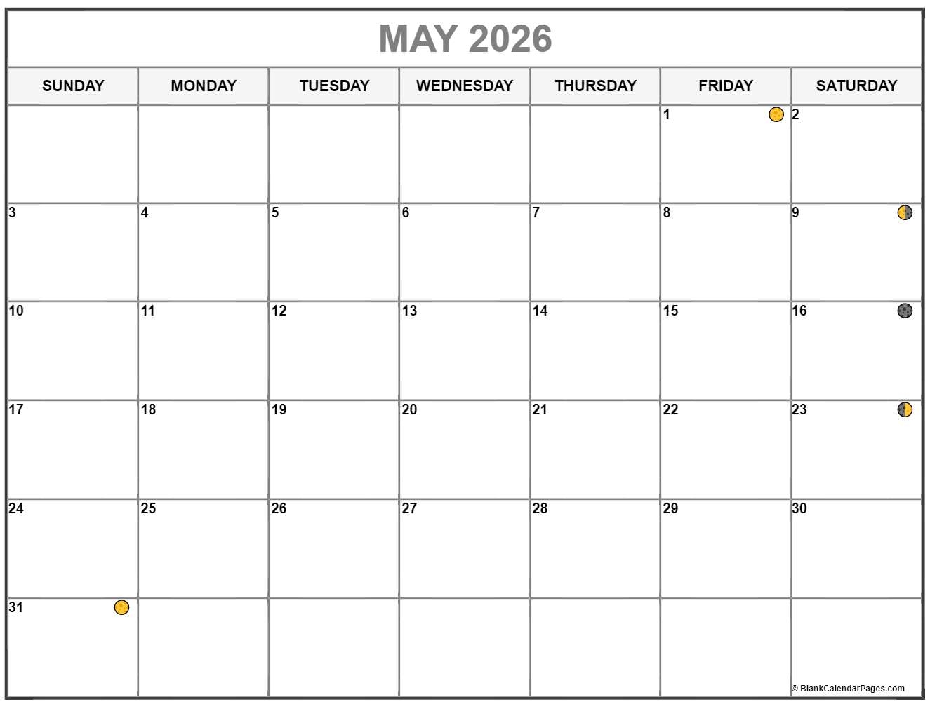 May 2026 Moon Phases Calendar Custom Calendar Maker