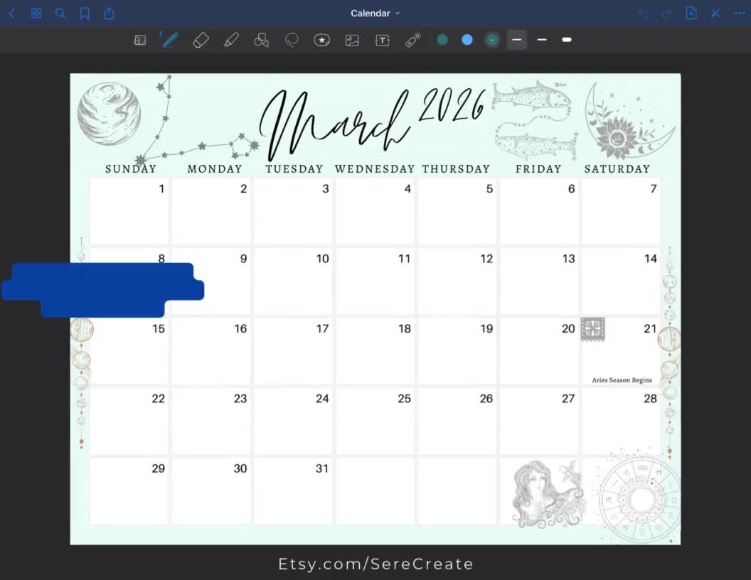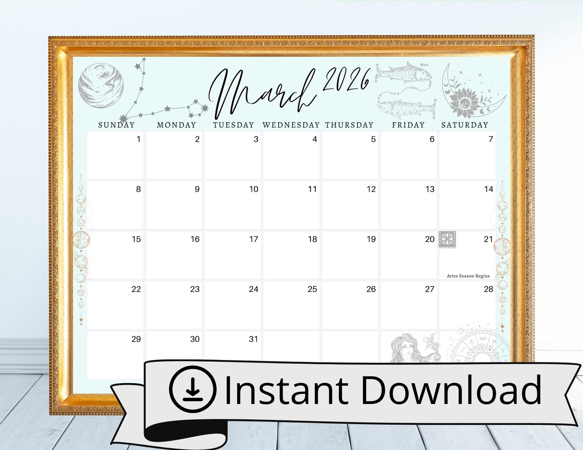 March 2026 Digital Calendar Pisces Astrology Planner Editable Fillable Printable Calendar For Planning PDF PNG And JPG Download Etsy