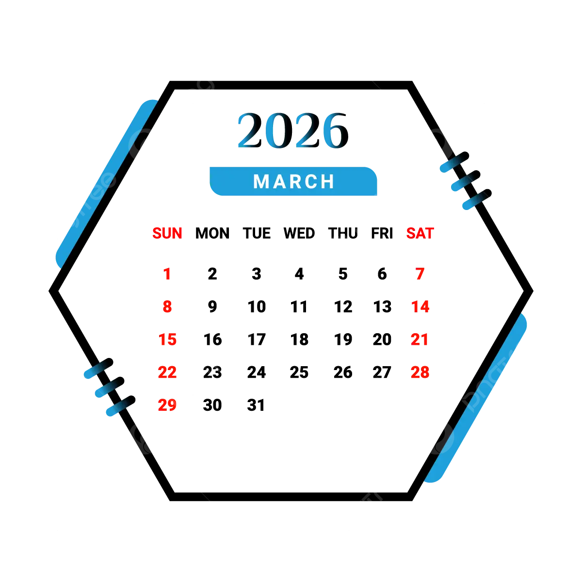 2026 March Month Calendar With Skyblue And Black Geometric Style
