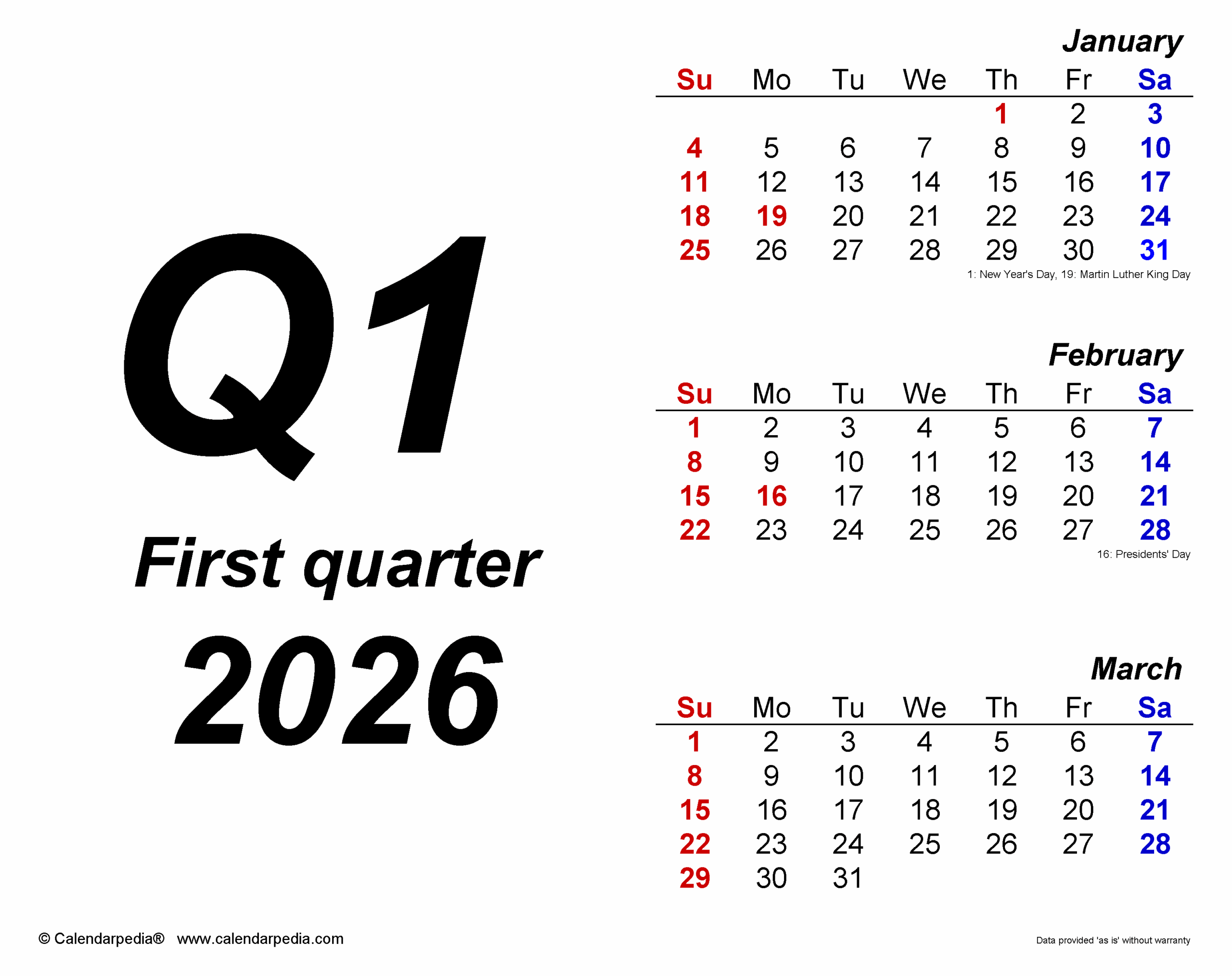 Quarterly Calendars 2026 Free Printable PDF Templates