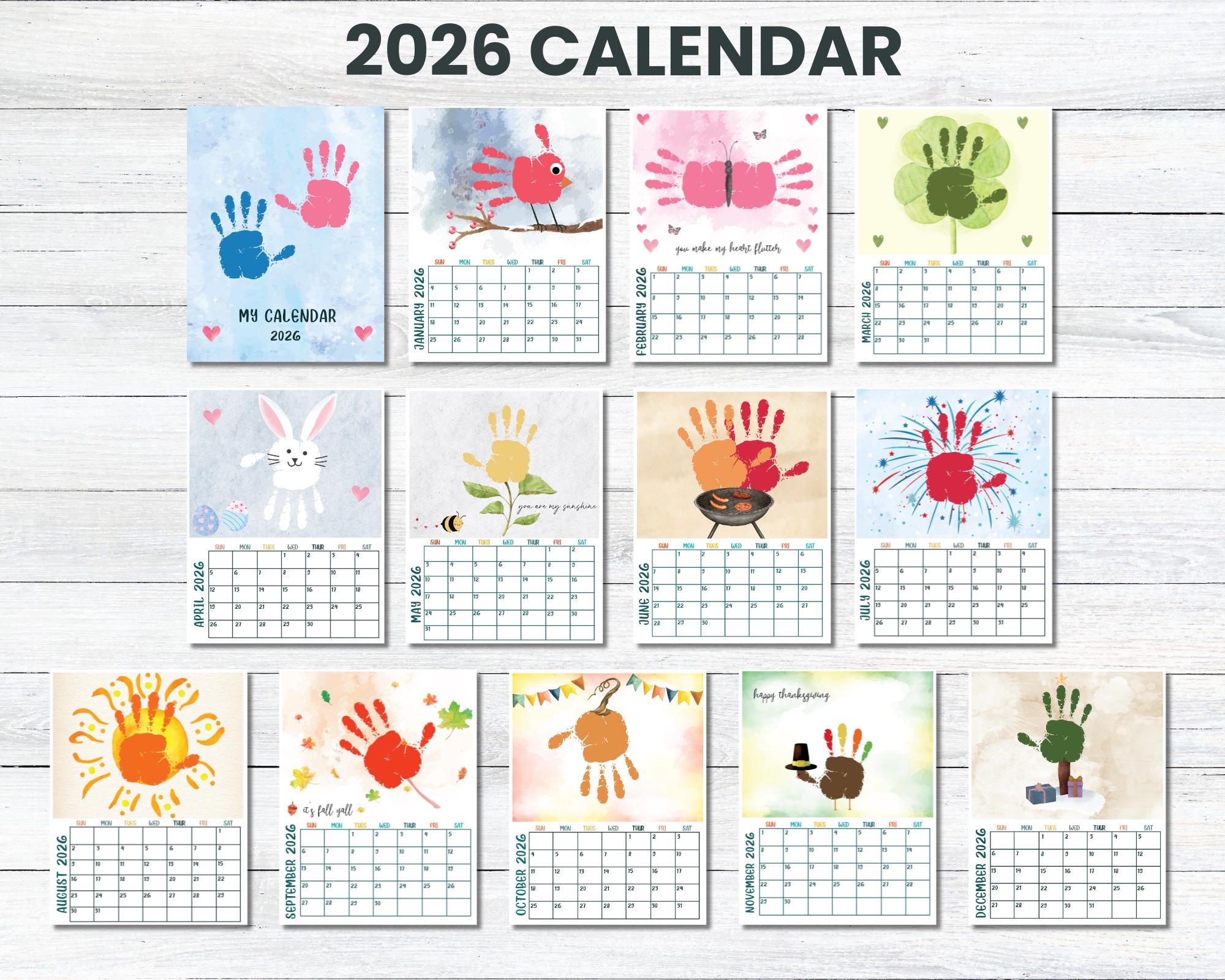 2026 12 Month Handprint Calendar DIY Kid Toddler Baby Craft