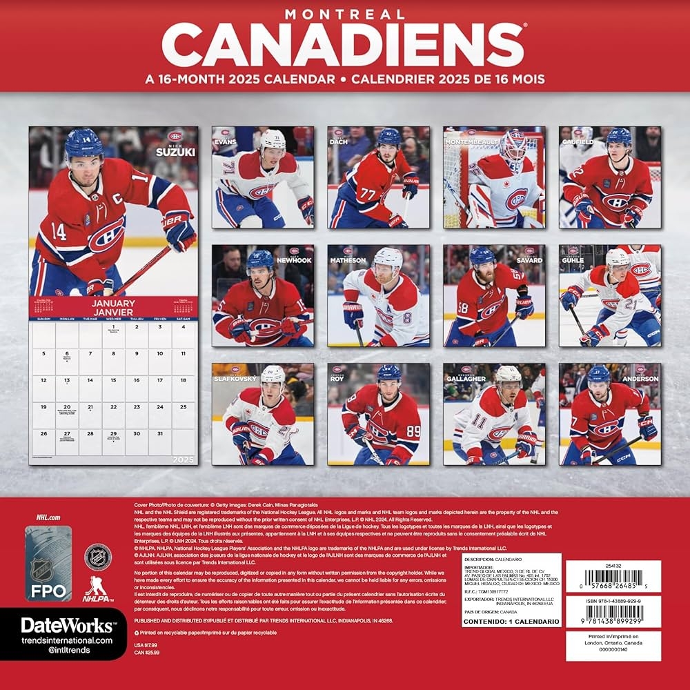 2025 NHL Montreal Canadiens Wall Calendar Bilingual French