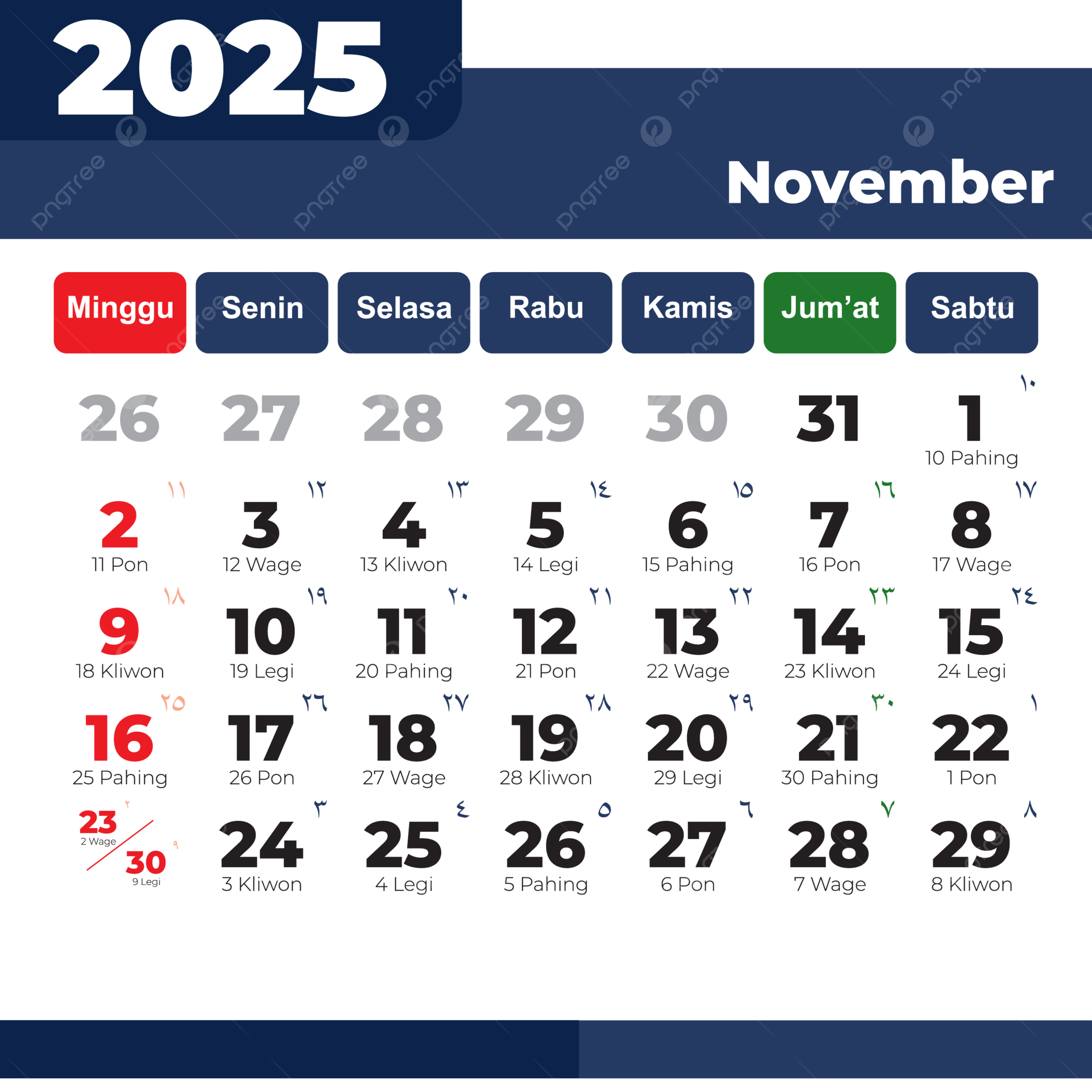 Simple Indonesian 2025 Calendar For November Complete With National Holidays Clipart Vector 2025 Calendar Indonesian Calendar November PNG And Vector With Transparent Background For Free Download