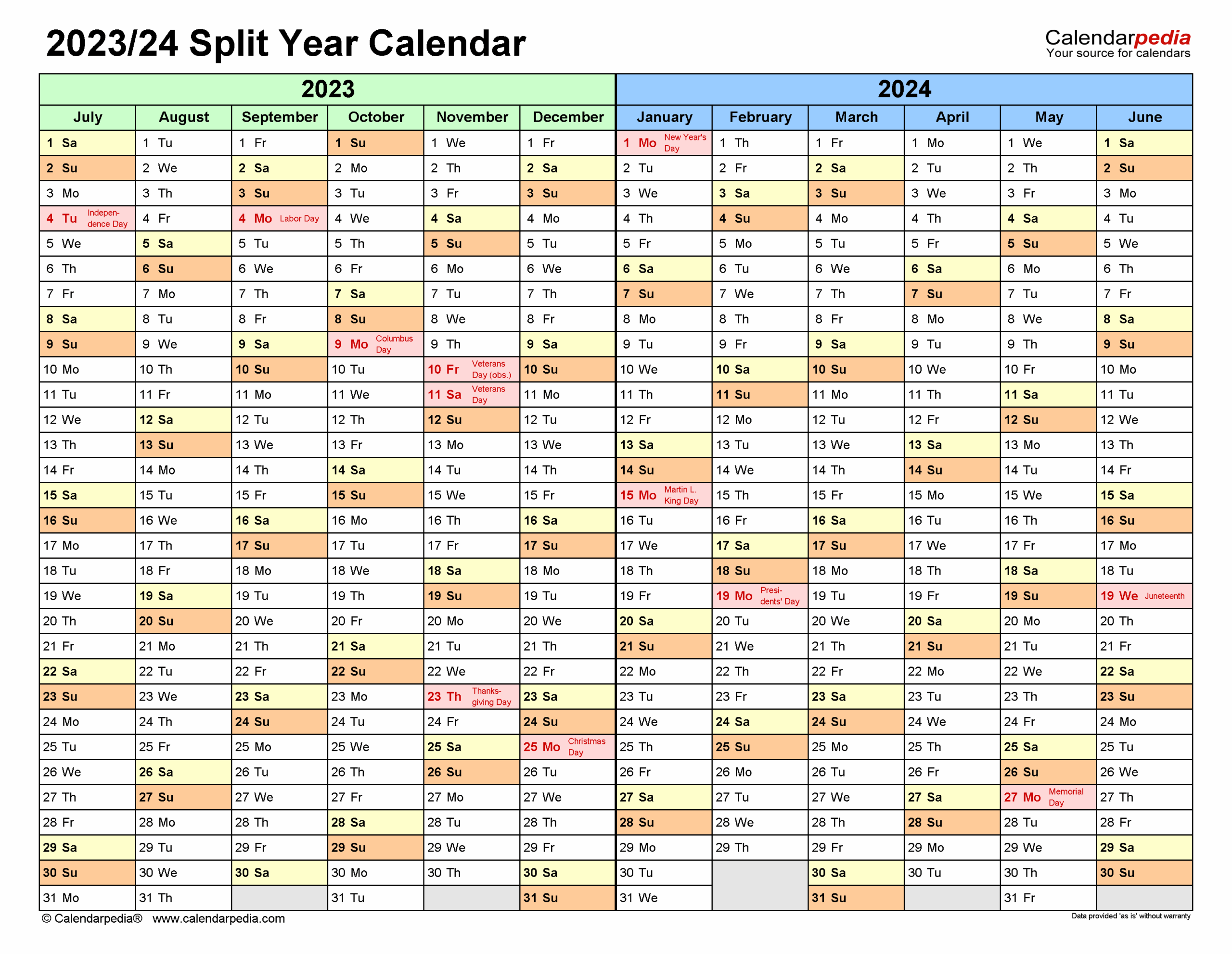 Split Year Calendars 2023 2024 July To June PDF Templates