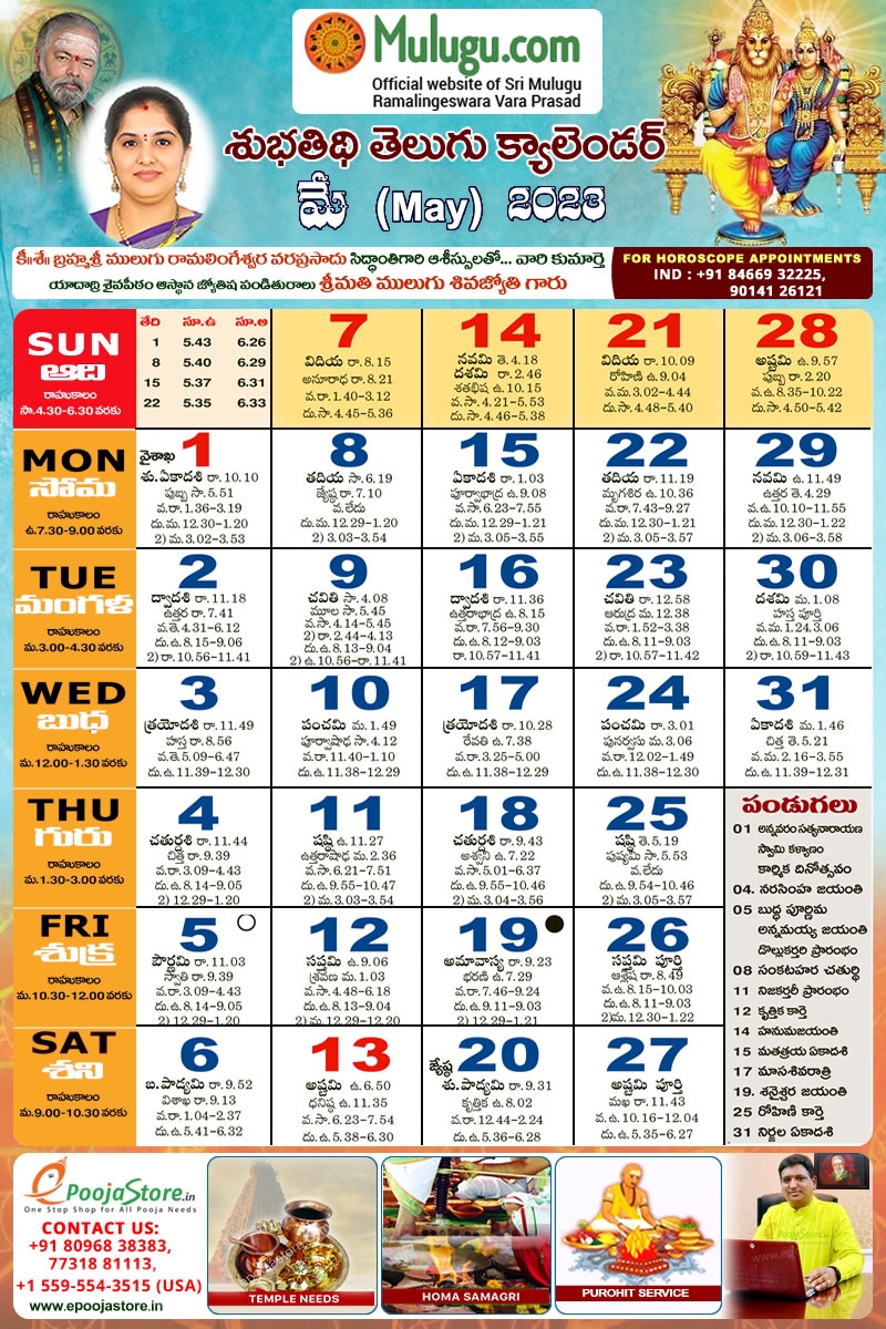 May 2026 is a month full of significance and celebrations in the Telugu Calendar. Whether you’re observing religious rituals, attending festivals, or simply enjoying the holiday spirit, May has something for everyone. Stay tuned for more updates and information on upcoming events.