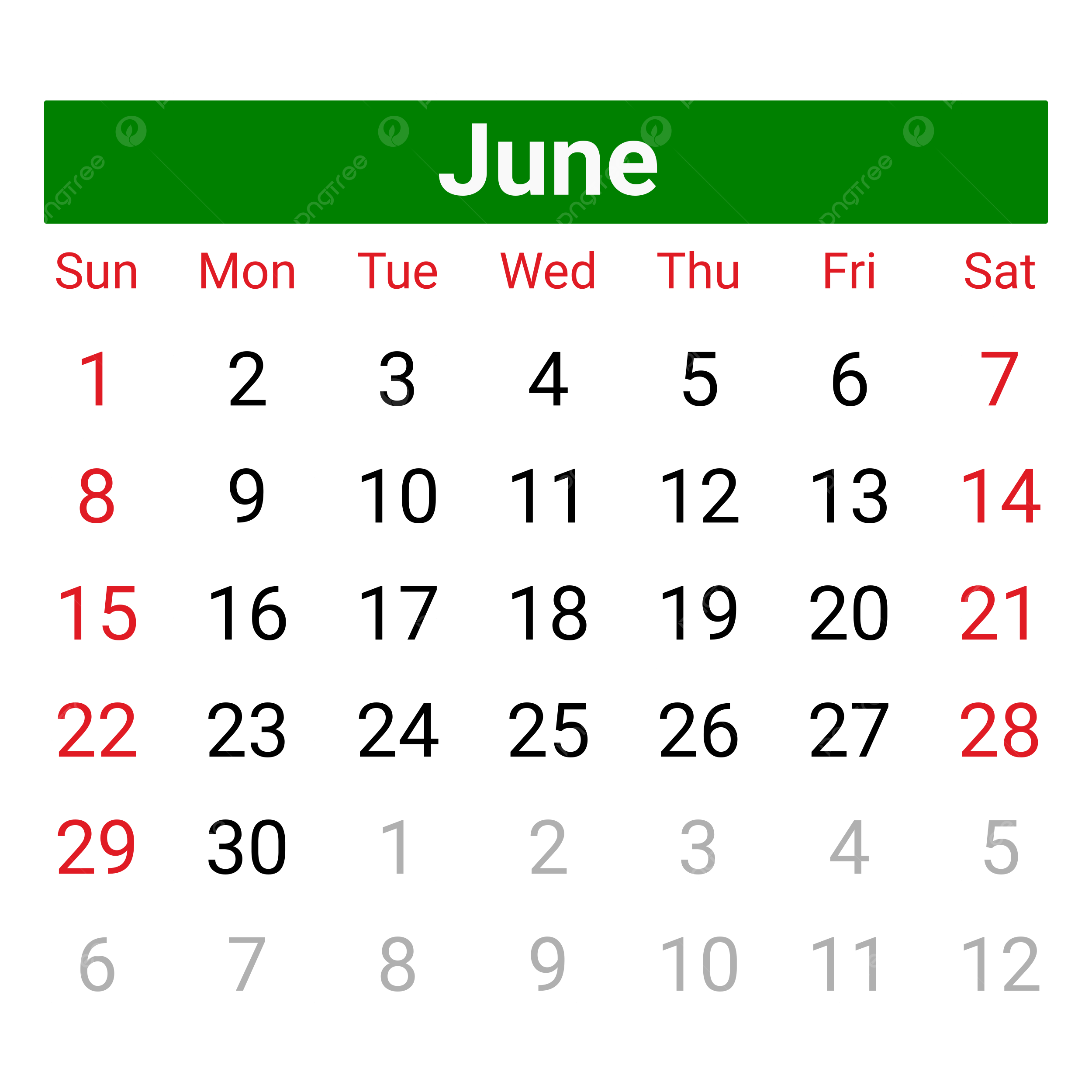 Calendar June 2025 Vector Calendar 2025 June 2025 Monthly PNG And Vector With Transparent Background For Free Download